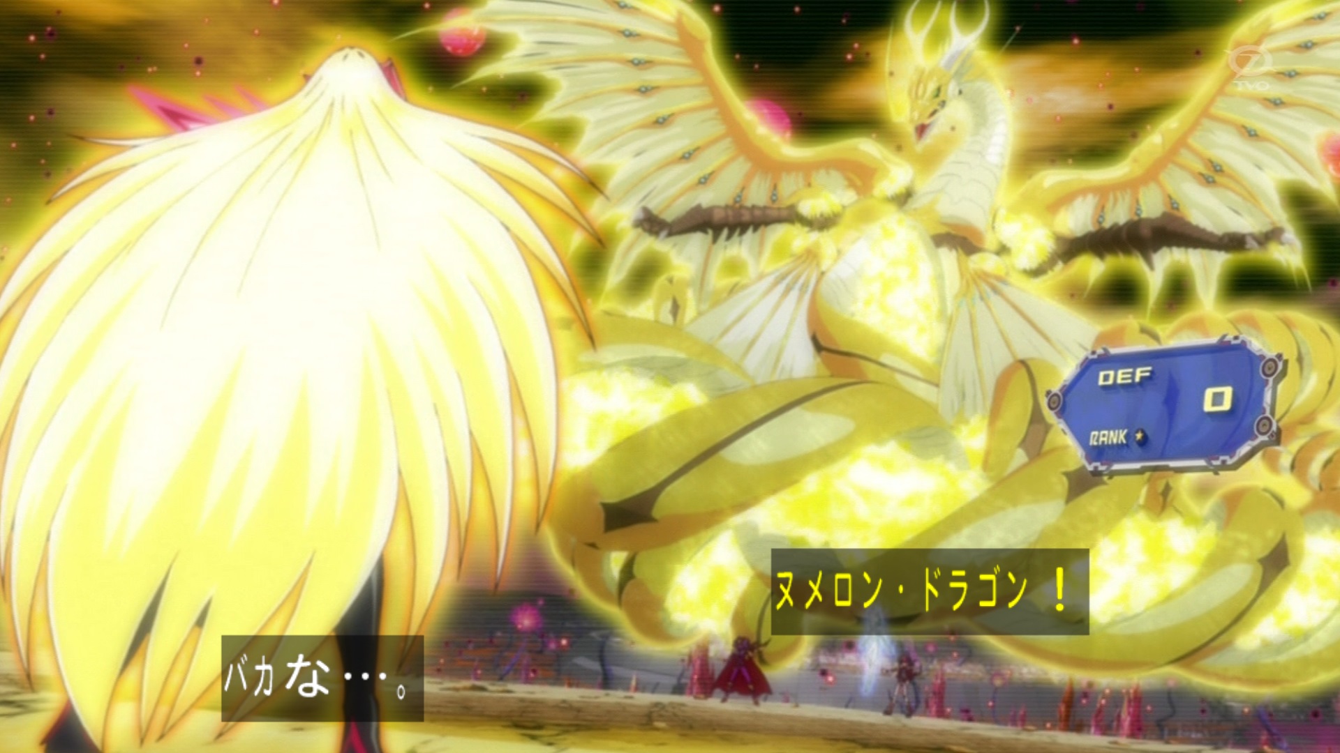 | 《No.100 ヌメロン・ドラゴン》 レベル1×2 光属性 ドラゴン族 0/0 このカードは「No.」と名のつくモンスター以外との戦闘では破壊されない。自分の手札が0枚で自分フィールド上にカードが存在しない場合、相手モンスターエクシーズの直接攻撃時、このカードはエクストラデッキから特殊召喚することができる。このカードと戦闘を行うモンスターの攻撃力はバトルフェイズの間だけ0になる。このカードが破壊された時、フィールド上に存在するモンスターを全て破壊し、このターンにフィールド上で破壊された全ての魔法・罠カードを破壊された前の状態に戻す。 エクシーズ口上:宇宙創造の鍵!今こそ闇の扉を開き、未来をその咆哮と共に導け!降臨せよNo,100! ヌメロン・ドラゴン! |