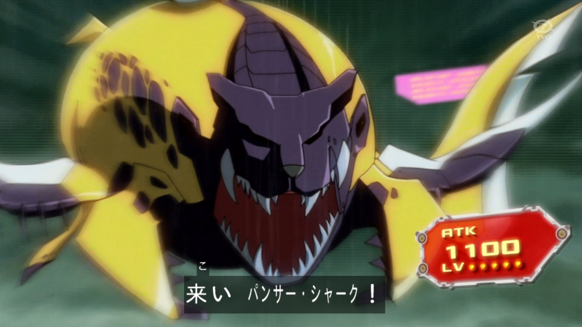 | 《パンサーシャーク》 星5 水属性 1100/? 相手フィールド上に2体以上モンスターが存在する場合、 リリースなしで召喚できる |