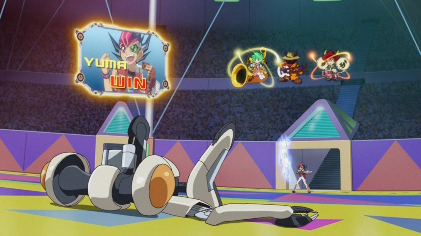 遊馬とのデュエルになり、スーパーディフェンスロボを使うオービタルはいきなり切り札をエクシーズ召喚する エクシーズ口上ありとはなかなかやるな