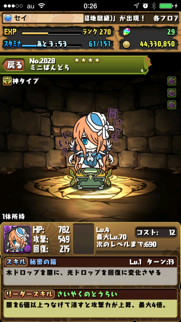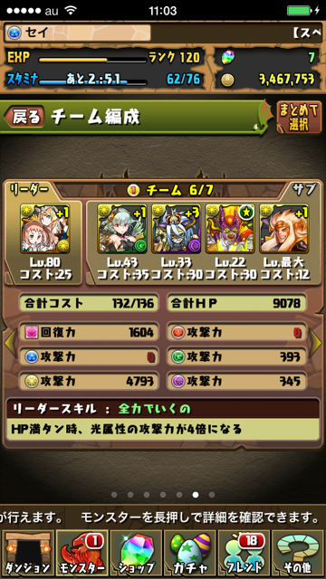 パズドラを無課金でちまちまプレイしてやっとランク120になりました