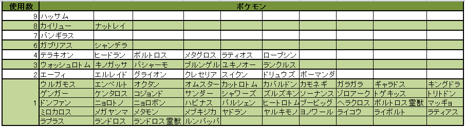 レートの低いところでしたが今回の使用率