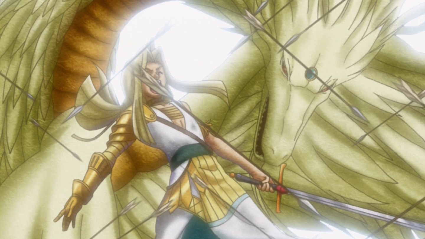 | 《No.46 神影龍ドラッグルーオン》 ドラゴン族レベル8×2 光 ドラゴン族 3000/3000 このカードは「No.」と名のつくモンスター以外との戦闘では破壊されない。相手フィールド上に存在するドラゴン族モンスターの効果は無効化される。自分フィールド上にこのカード以外のドラゴン族モンスターが存在する限り相手はこのカードを攻撃対象に選択することができず、このカードはカードの効果の対象にならない。自分フィールド上にこのカード以外のドラゴン族モンスターが存在しない場合、このカードのエクシーズ素材を1つ取り除いて発動することができる。自分の手札からドラゴン族モンスター1体を召喚条件を無視して特殊召喚する。自分フィールド上にこのカード以外のドラゴン族モンスターが存在せず、このカードのエクシーズ素材も存在しない場合、相手フィールド上に存在するドラゴン族モンスター1体を選択して発動することができる。選択した相手モンスターのコントロールを得る。この時、あいれプレイヤーはライフポイントを半分払うことで、選択したモンスターを破壊することができる エクシーズ口上:雷鳴よ轟け!稲光よ煌めけ!顕現せよ我が金色の龍 神影龍ドラッグルーオン! |