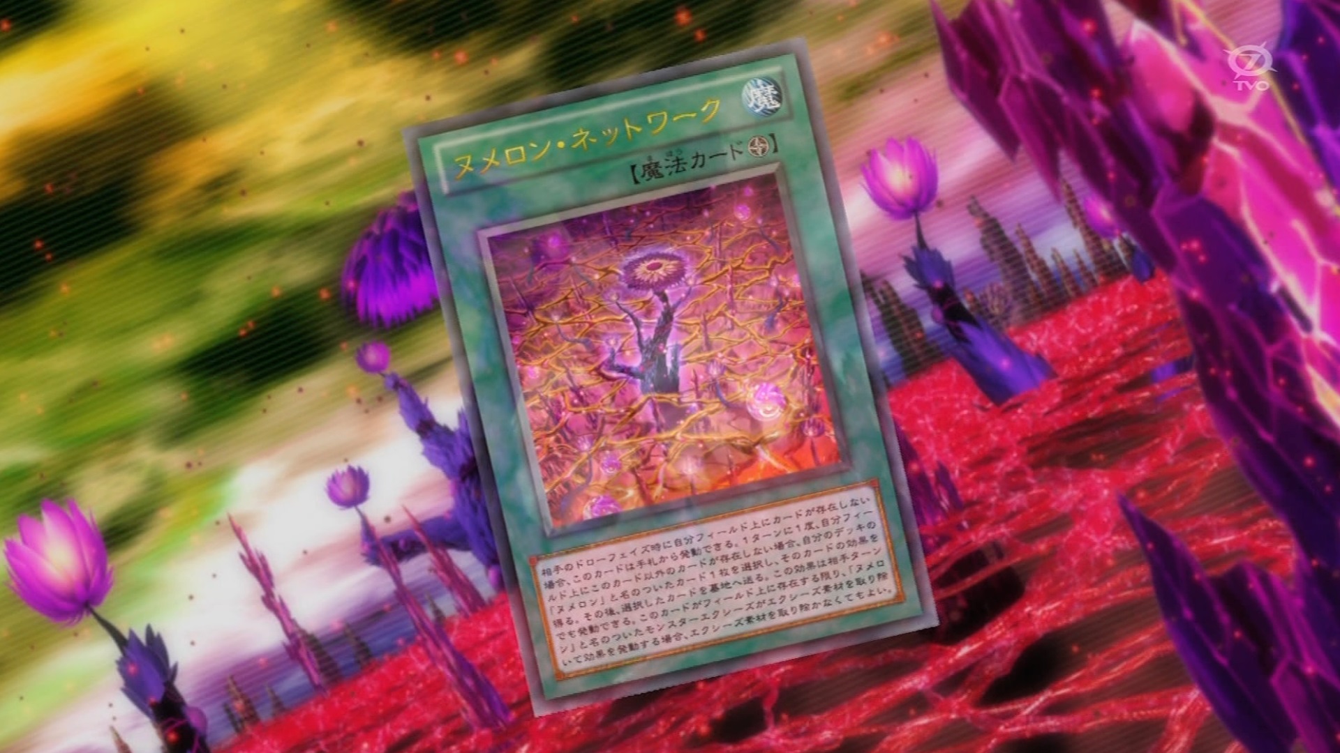 | 《ヌメロン・ネットワーク》 フィールド魔法 相手のドローフェイズ時に自分のフィールド上にカードが存在しない場合、このカードは手札から発動できる。1ターンに1度、自分フィールド上にこのカード以外のカードが存在しない場合、自分のデッキの「ヌメロン」と名のついたカード1枚を選択し、そのカードの効果を得る。その後、選択したカードを墓地へ送る。この効果は相手ターンでも発動できる。このカードがフィールド上に存在する限り「ヌメロン」と名のついたモンスターエクシーズがエクシーズ素材を取り除いて効果を発動する場合、エクシーズ素材を取り除かなくてもよい。 |