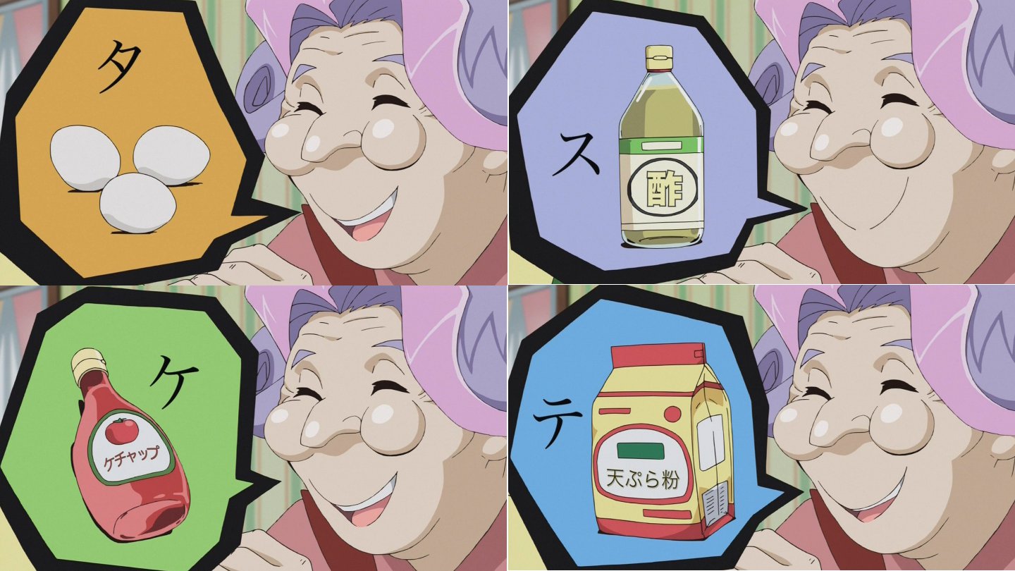 卵の「タ」、酢の「ス」、ケチャップの「ケ」、天ぷら粉の「テ」