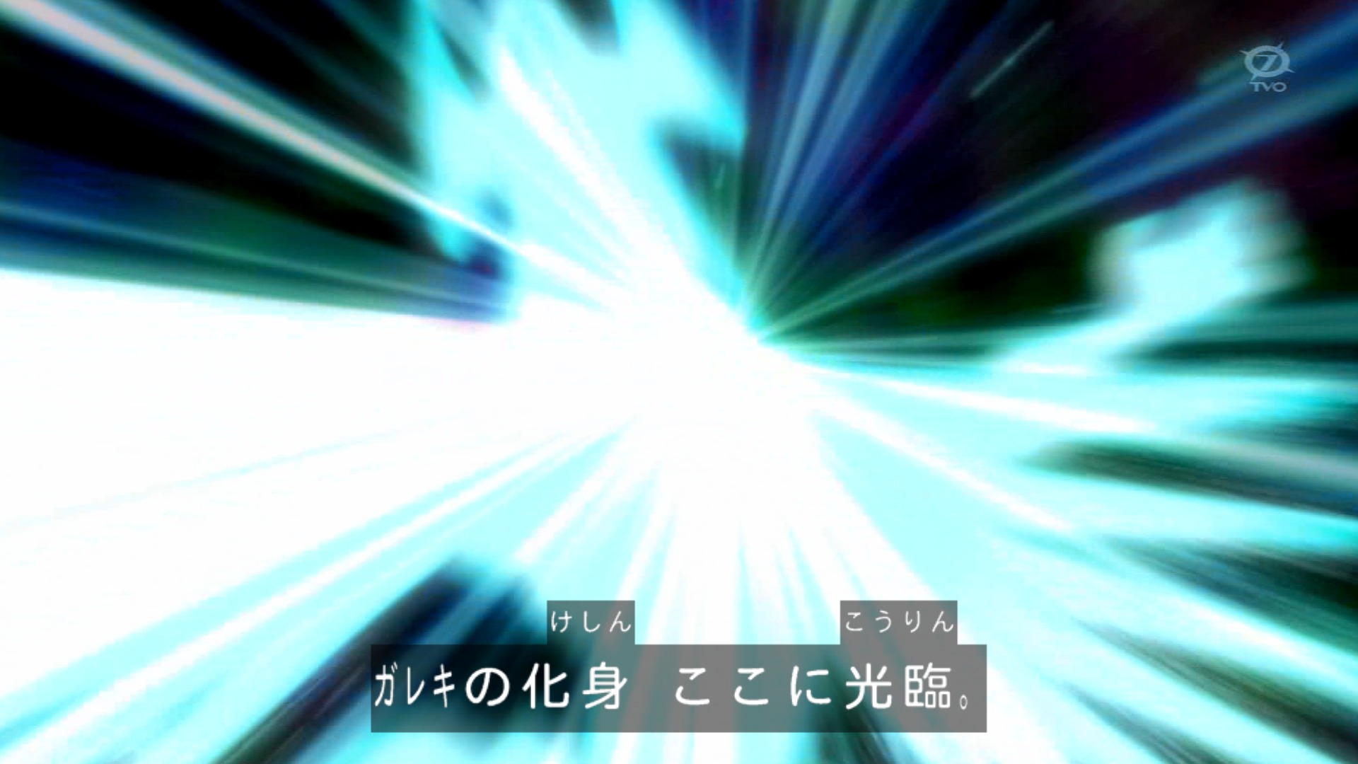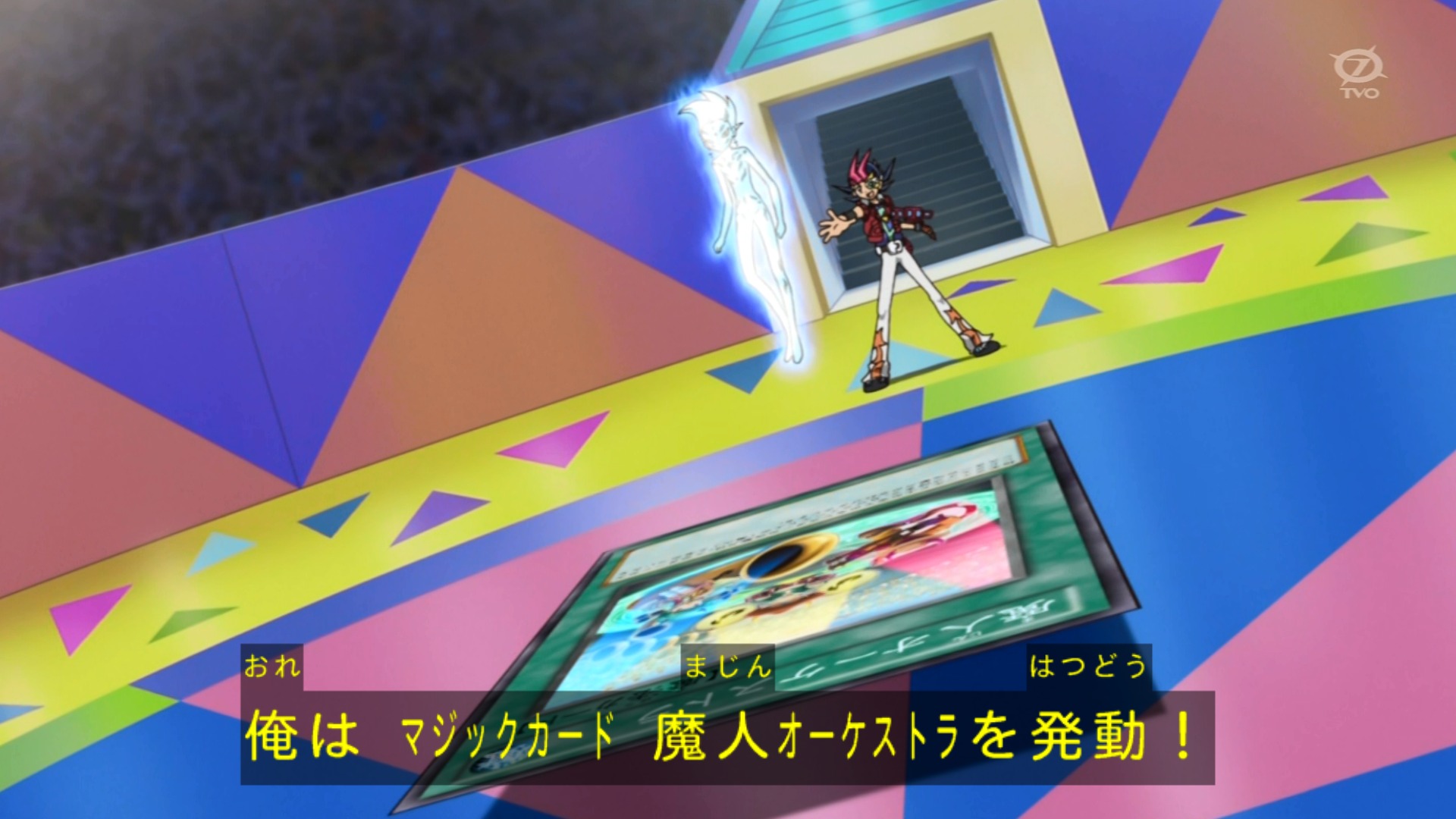 遊馬とのデュエルになり、スーパーディフェンスロボを使うオービタルはいきなり切り札をエクシーズ召喚する エクシーズ口上ありとはなかなかやるな