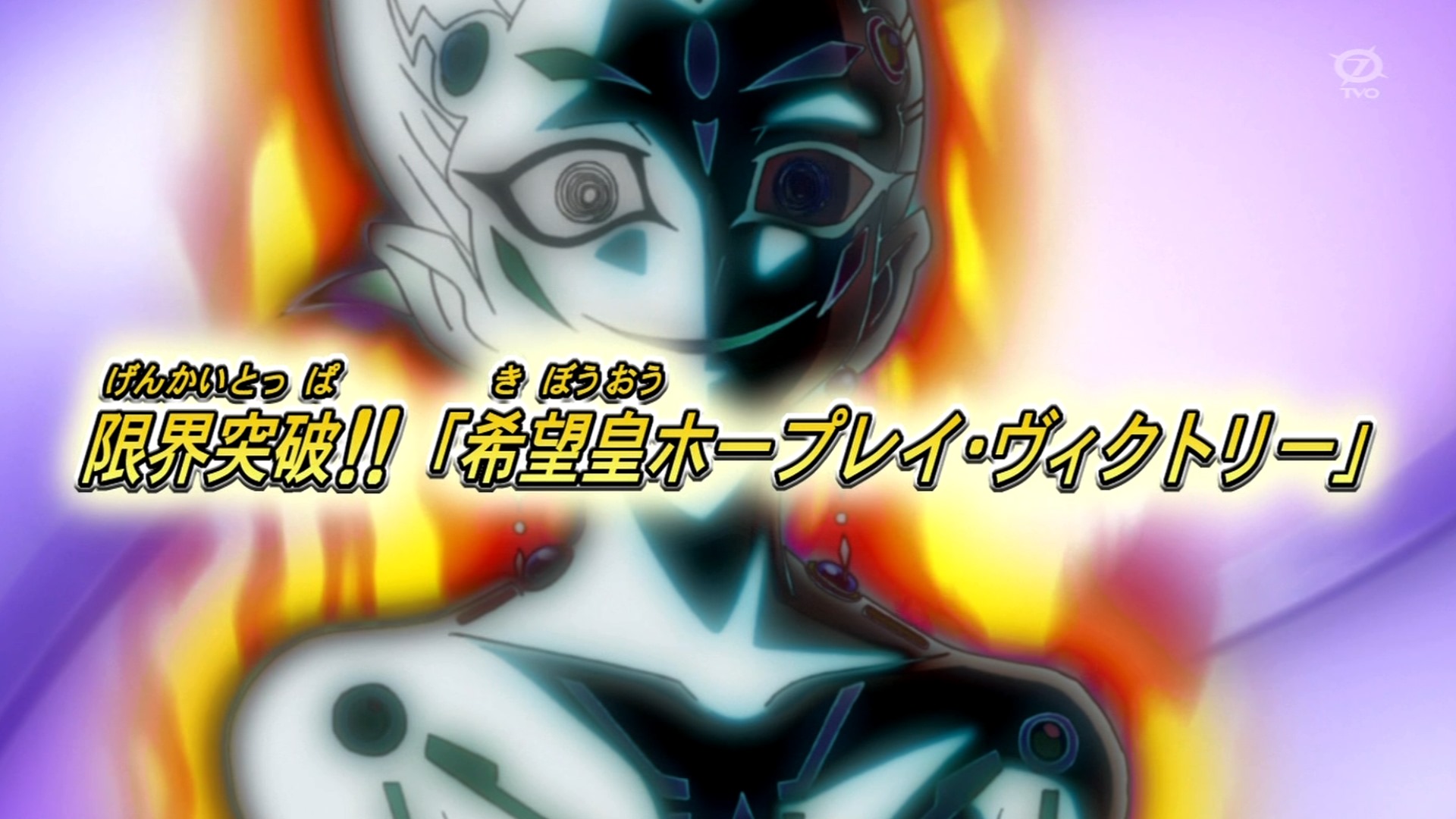 | 《CNo.39 希望皇ホープレイビクトリー》 ランク5 2800/? このモンスターが攻撃するときORUを一つ取り除き、相手モンスターの攻撃力をこのモンスターの攻撃力に加える。 エクシーズ口上:未来に輝く勝利をつかめ!重なる想い繋がる心が世界を変える! 攻撃名:ホープ剣ダブルビクトリースラッシュ |