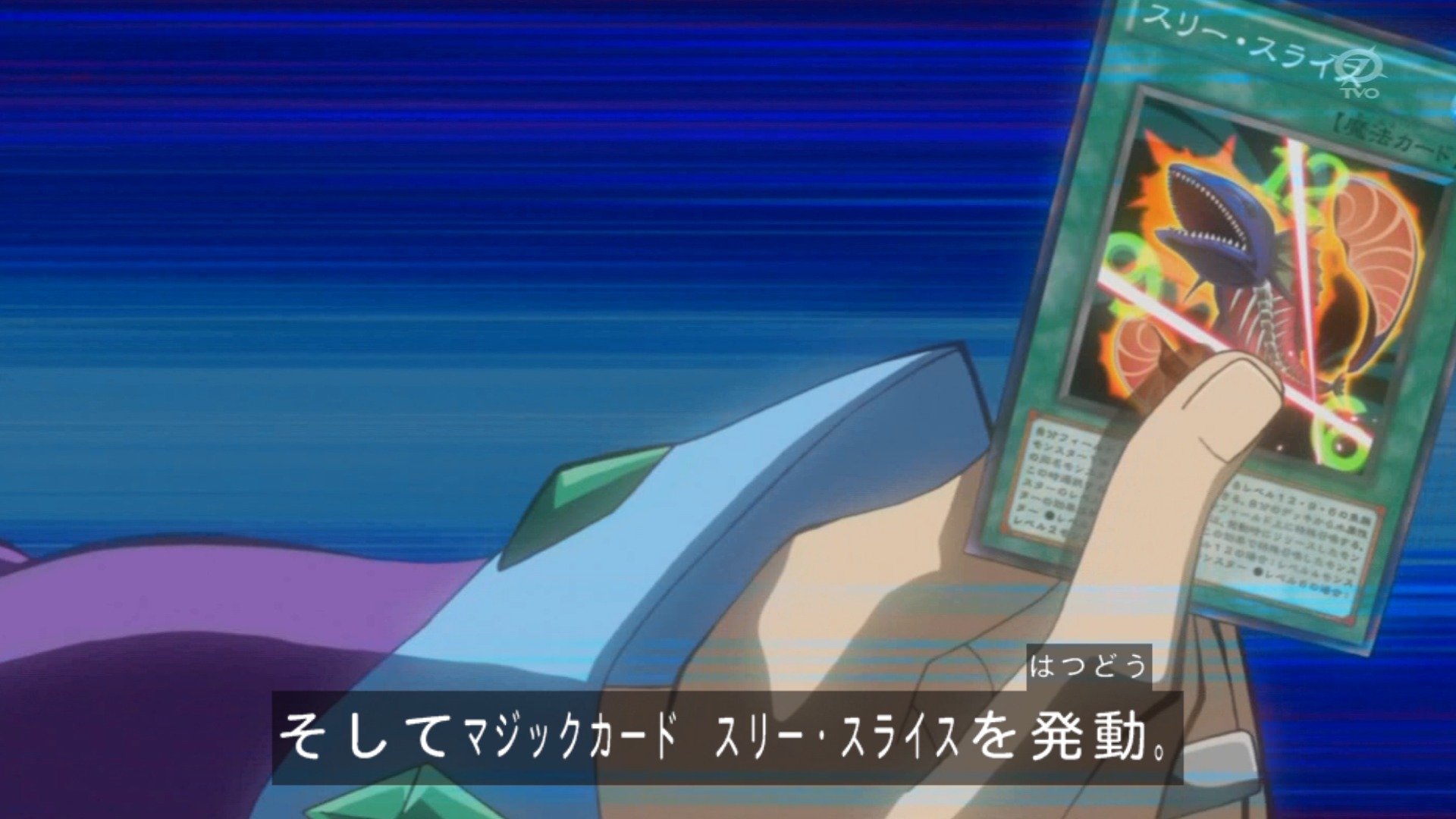 | 《スリー・スライス》 レベル6・9・12のいずれかの魚族モンスターを墓地に送り、そのレベルを3で割った数だけレベル3水属性モンスターをデッキから特殊召喚 |